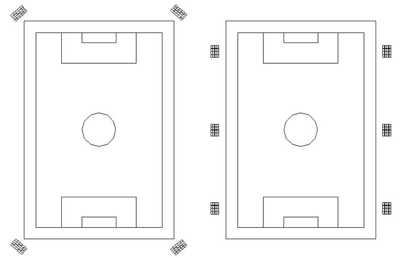 3.3 不带跑道足球场地照明四角和六杆布灯图