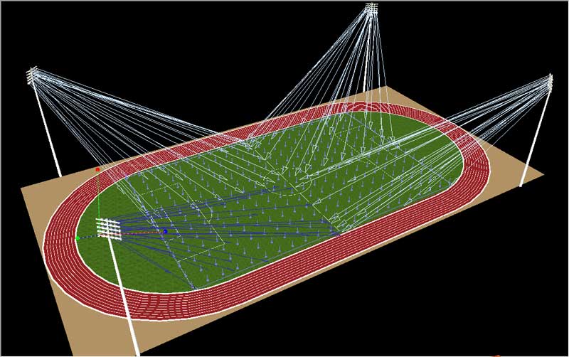 两侧布置:灯具与灯杆或建筑马道结合,以连续光带形式或簇状集中形式布置在比赛场地两侧;