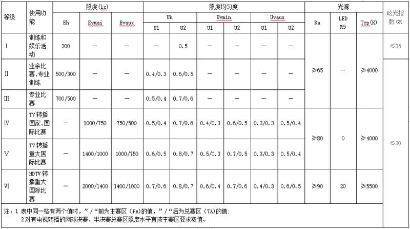 一、网球场的照明标准