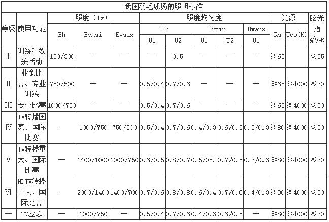 一、羽毛球场的照明标准