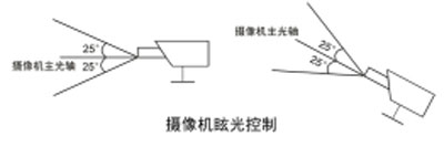 c严格控制对摄像机的眩光,主摄像机视野反射静水表面的光,游泳池照明灯发出的光线不得直接投向固定摄像机,如不直接照射以固定摄像机为中心的50°扇形区域则更为理想,如下图