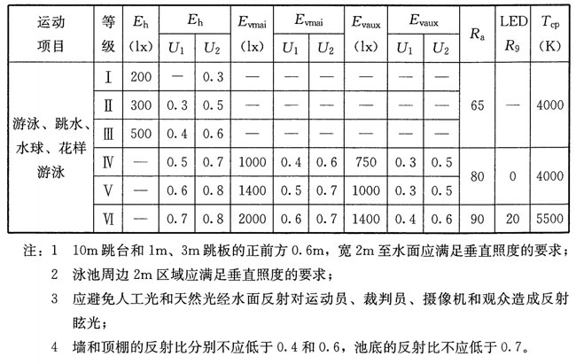 a.宜沿泳池纵向两侧布置;灯具瞄准角宜为50°-55°;